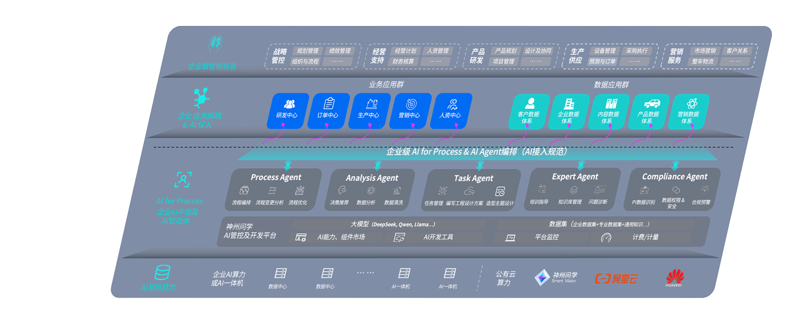 端到端的一站式AI工作空间深度融合了从企业战略规划到日常经营的全流程业务板块,,,,定向解决车企内部领域多、、部门多、、、链条长、、、、场景碎片化等难题,,,支持车企快速构建以AI为核心的生产力写作体系,,,实现任务执行与AI能力的无缝集成与交互
