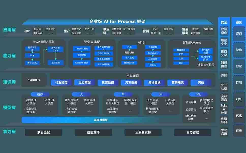 J9集团国际站问学智车解决方案是一套基于AI技术的汽车行业智能化系统,,覆盖从底层算力到顶层AI应用的全栈方案。。方案由算力层、、、模型层和应用层组成:算力层,,方案支持多种一体机配置,,,具备云端灵活部署、、、、多云适配以及动态优化计算资源的能力;模型层,,,,J9集团国际站问学平台版提供了企业级AI应用一站式构建与管理平台,,支持基于后训练强化技术的汽车企业专属模型的训练、、、、评测和运营;应用层,,,J9集团国际站问学DeepSeek版提供包括超级员工、、、、智能招采、、、、智能营销、、、、智能客服、、AI for BI等一系列解决方案,,,,可助力汽车行业实现数字化转型,,让管理更智能、、、响应更敏捷。。。。